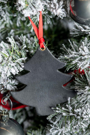 This chunky and cheerful Christmas tree is sure to bring a smile to young and old alike. Made of bridle leather and fully finished with a smooth, rich cut, this beautiful Christmas tree cut out feels wonderful in the hand and will look handsome on any tree. Strung with a bright red ribbon for easy hanging.