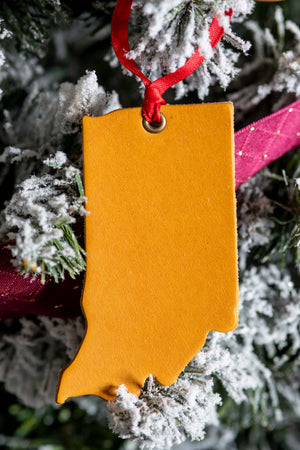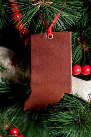 Get ready for a Hoosier Christmas with this Indiana-shaped Christmas ornament! Made locally in our shop in Lebanon, Indiana, you’ll be a supporting local business and quality leatherwork when you show off this Indiana-shaped ornament on your tree this year.